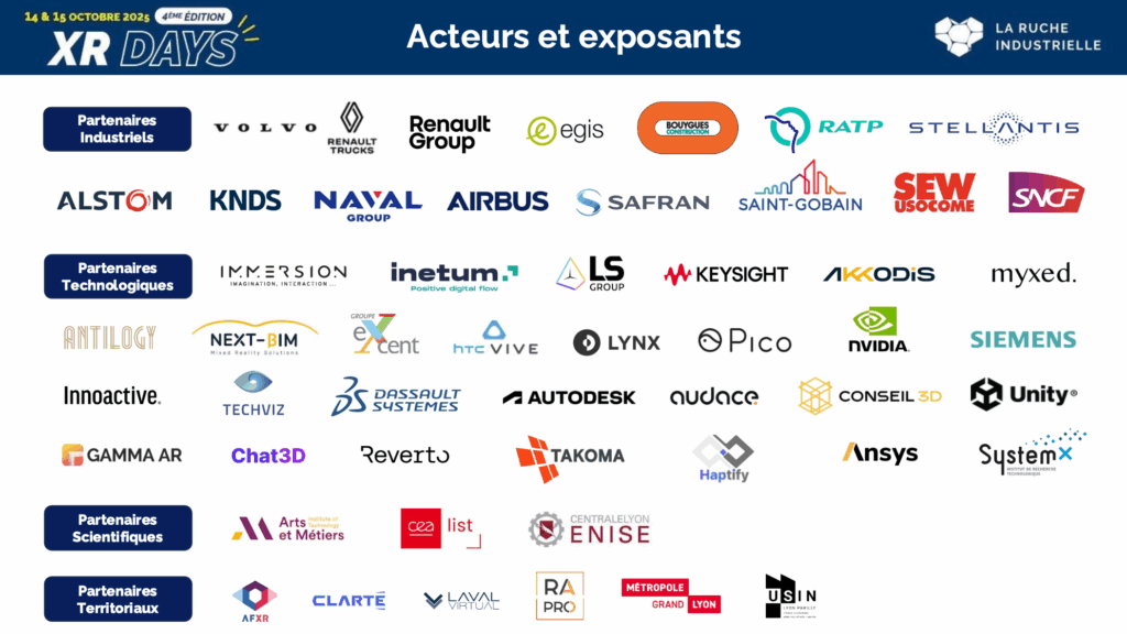 • L’annonce d’une initiative inédite pour un futur casque de Réalité Augmentée, portée par les industriels européens du cercle XR de la Ruche (Renault Group, Airbus, Safran, Stellantis, Saint-Gobain, Naval Group, Alstom, SNCF, Bouygues Construction, Volvo Group, KNDS, Egis et Haulotte).